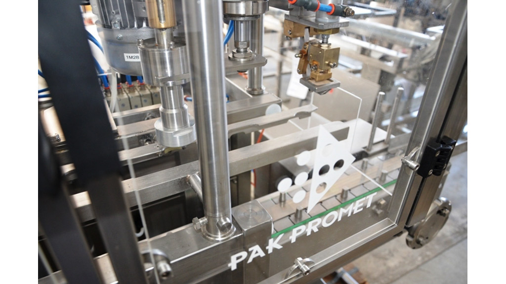 The work process is electronically controlled. The machine consists of the following assemblies, which in technical and technological terms represent a single unit: bottle conveyor, dosing module, unit for adding and charging caps, winding caps, dating, receiving turntable. The bottle conveyor consists of a prochronic hinge belt, a drive and tensioning unit and elements for precise belt guidance. An integral part of the conveyor are the elements for adjusting the position of the belt depending on the size of the packaging, as well as the carriers of the conveyor and the protective cover. There are thorns on the bar that serve to guide and position the bottles.