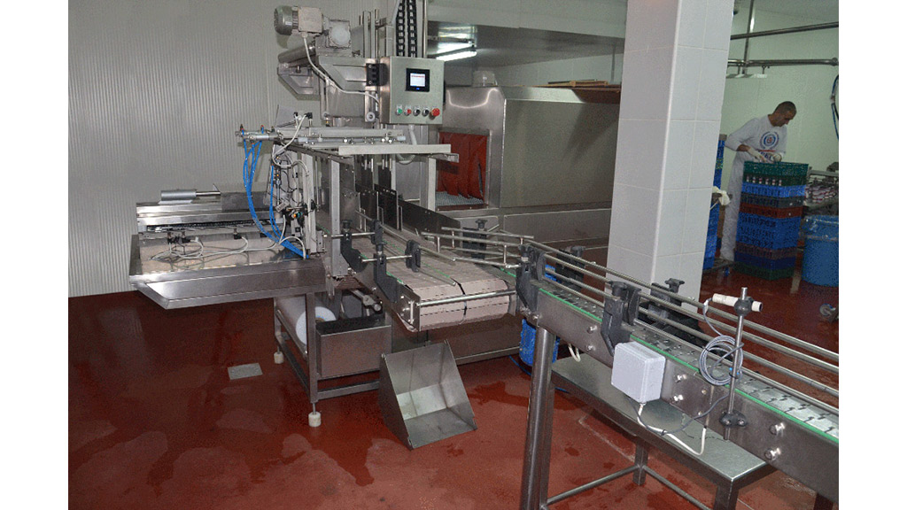 The filled bottles come with a hinged conveyor to the machine, where, on the working table, a package is first formed in the given arrangement, and then the package switch is activated, which pushes the package, and this one pulls the foil film with which it is wrapped. Wrapping is completed when the iron is lowered, which closes the foil and the fourth side of the package, cuts off the foil and re-welds the ends of the upper and lower reel. The package wrapped in this way comes to the conveyor that carries it through the chamber. The conveyor belt is driven by a motor-gear reducer, with adjustable belt speed. The heat shrinkage chamber is placed on the base of the conveyor, and the foil is heated in it and glued to the package. The air in the chamber is heated by electric heaters, its circulation is achieved by means of an axial fan, and the temperature is regulated by means of a thermo regulator. The chamber is thermally insulated with glass wool which is used to fill the walls and curtains at the entrance and exit. The package cooling unit is located just behind the chamber and has the task of quickly cooling the foil with which the package is wrapped. Cooling is performed in a stream of cold air generated by a fan. The receiving conveyor, which is designed as a gravity roller, is located in the extension of the wire conveyor.